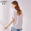 SEMIR Short sleeve white shirt women summer 2019 new lapel V-neck shirt simple solid color students fresh relaxed blouse