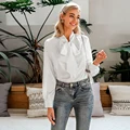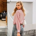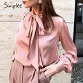 Cheap Price Simplee Casual pink long sleeve women blouse shirt Summer spring neck tie blouses shirt Elegant wor with Free Worldwide Shipping!