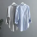 2019 New White Shirt Casual Button Up Turn Down Collar Female Blouse Long Sleeve Cotton Blouse Embroidery Blouse Lady 5083 50