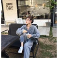 Knitting Female Sweater Pantsuit For Women Two Piece Set Knitted Pullover V-neck Long Sleeve Bandage Top Wide Leg Pants Suit
