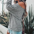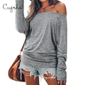 Special Offer CUPSHE Gray Off-The-Shoulder Top Sexy Women Long Batwing Sleeve Shirt Tops Blouses 2020 Autumn Wint with Free Shipping Worldwide!