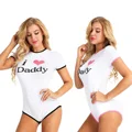 Best Price iiniim Womens Adult I Love Daddy Pattern Press Button Crotch Cotton Romper Leotard Clubwear Jumpsui with Free Shipping Worldwide!