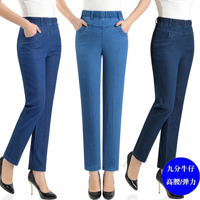 Cheap Offer Middle-aged mother Nine Denim pants plus size 5XL Fashion Summer Slim 4 pocket Stretch Jeans Solid with FREE Shipping Worldwide!