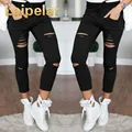 Cheap Price New 2018 Skinny Jeans Women Denim Pants Holes Destroyed Knee Pencil Pants Casual Trousers Black Whi with Free Shipping Worldwide!