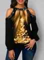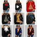 New Women Long Sleeve Tops plus size women casual spliced blouse Casual Loose Off Shoulder Plus Size top women blouse fashion