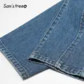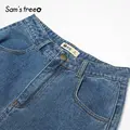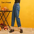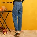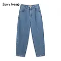 Special Offer SAM'S TREE Dark Blue Solid High Waist Jeans Women 2019 Autumn Straight Washed Loose Casual Office L with Free Shipping Worldwide!