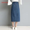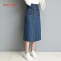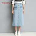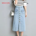 Discount Offer WICCON Autumn Spring Elegant Women High Waist Jeans Skirt 2020 Button Up Pocket Vintage A-Line Casu with Free Shipping Worldwide!