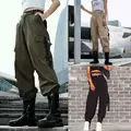 Women Harem Cargo Utility Work Hiking Army Military Pockets Combat Casual Trousers Cotton Solid Punk Loose Long Sports Pants