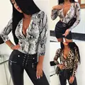 Women Long Sleeve V Neck Blouse Autumn Snake Skin Leopard Printing Tops Bodycon Blouse Slim Stretch Tops Blouses Female Blusas