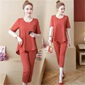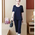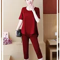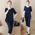 Women's Summer Tracksuits 2019 Casual 2Pcs Short Sleeve O-neck Tops+Cropped Trousers Ladies Lounge Sports Suits