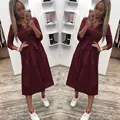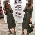Cheap Offer Women Vintage Front Button Sashes Party Dress Three Quarter Sleeve Turn Down Collar Solid Dress 201 with Free Shipping Worldwide!