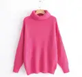 2019 Winter Candy Color Oversized Turtleneck Sweater Hot pink Mustard Color Loose Knitted Jersey