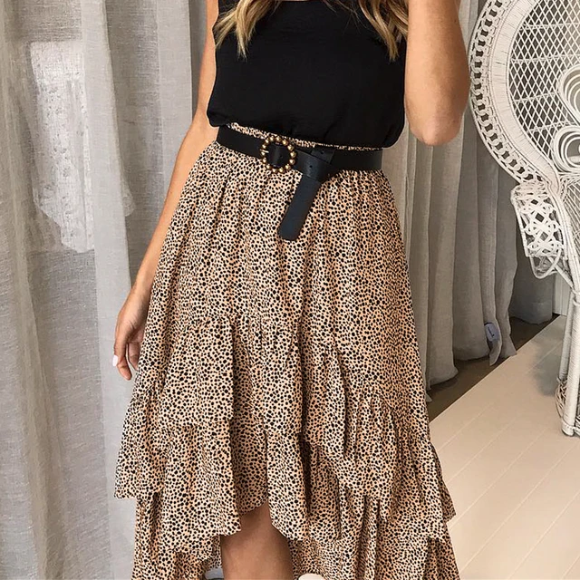 Limited Offer 2020 Asymmetrical High Waist Women Skirts Polka Dot Beach Female Summer Skirt Ruffles Midi Beach Ca with FREE Worldwide Shipping!