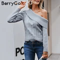 Special Price BerryGo Sexy one shoulder knitted sweater women Vintage puff sleeve pullovers female jumper Warm la with Free Worldwide Shipping!