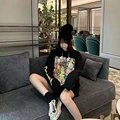 Cartton Print T shirt Women Harajuku Vintage Tops Fall Winter Tee Shirt Korean Oversized Clothes Shirt Long Sleeve O-Neck V717