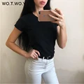 WOTWOY Summer Knitted Basic Solid T-shirt Women Casual Cotton Short Sleeve Tee-Shirts Female Tops Women 2020 New Fashion S-XL