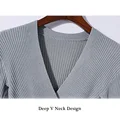 Genayooa 10 Colors V Neck Elastic Slim Sweater Women High Quality Soft Autumn Winter Korean Knitted Sweater Pullovers Jumper