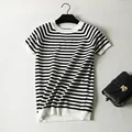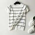Discount Offer Summer Short Sleeve Striped Pullover Women Sweater Knitted 2020 Sweaters O-Neck Tops Korean Pull Fe with Free Worldwide Shipping!