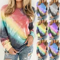 Discount Offer Women T-shirt Rainbow Print Long Sleeve Casual 5XL Oversize New Spring Autumn T Shirts Female Loose with Free Shipping Worldwide!